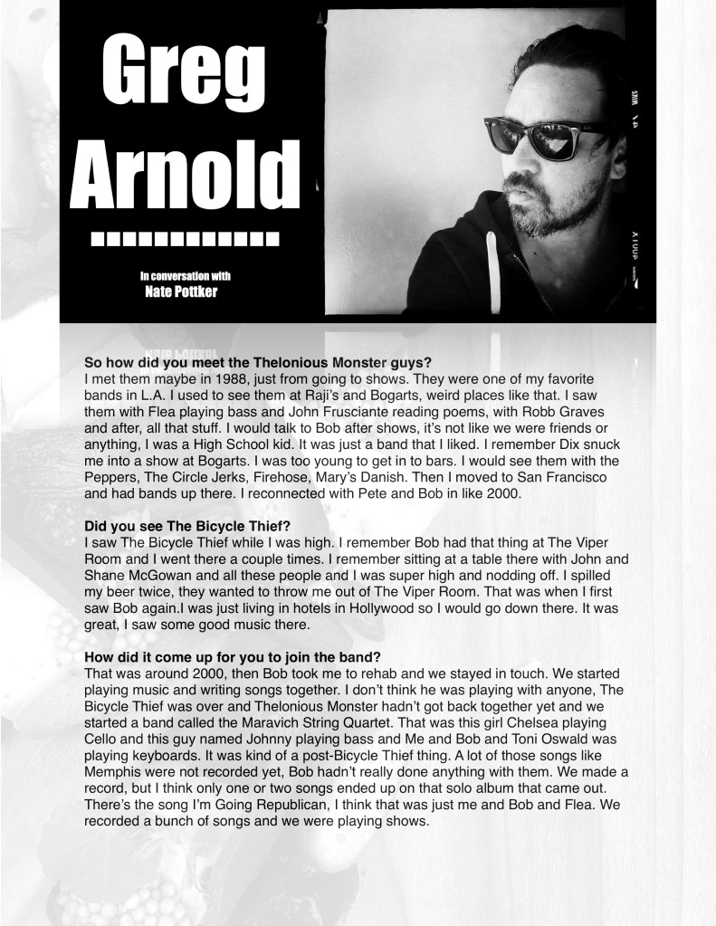 Greg has spent most of his time since being a member of Thelonious Monster as a chef. Check out this 2016 House Of Citrine interview. or this The Chalkboard Mag interview from 2018.