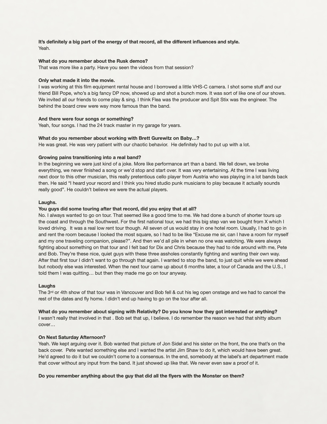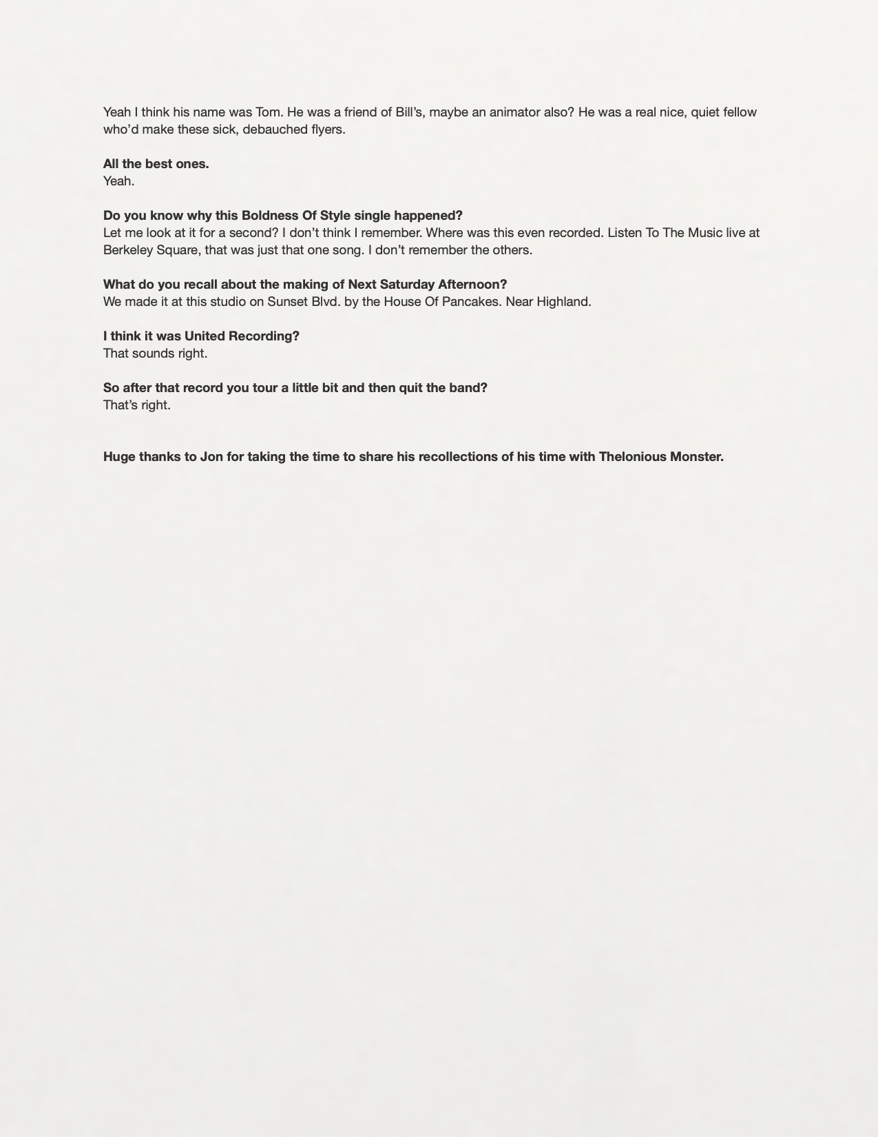 Recorded on Baby…You’re Bumming My Life Out In A Supreme Fashion and Next Saturday Afternoon.